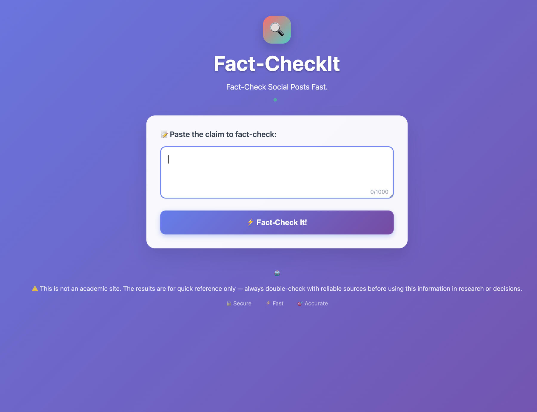 An instant fact-checking engine that helps social media users filter out false claims by cross-analyzing them with multiple AI models and summarizing the truth quickly and clearly.